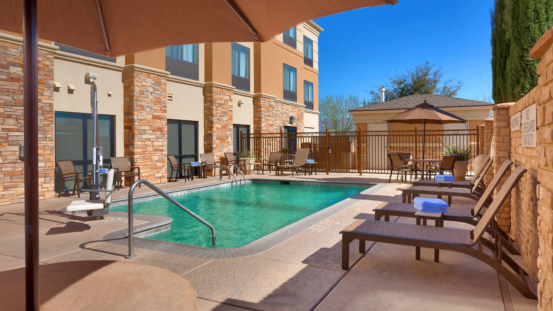 On weekends, Springhill Suites Thatcher hotel ensures that guests are well fed with a hot breakfast available from 7:00 AM to 10:00 AM. The neighborhood features restaurants, including Denny's, which is just near the accommodation.